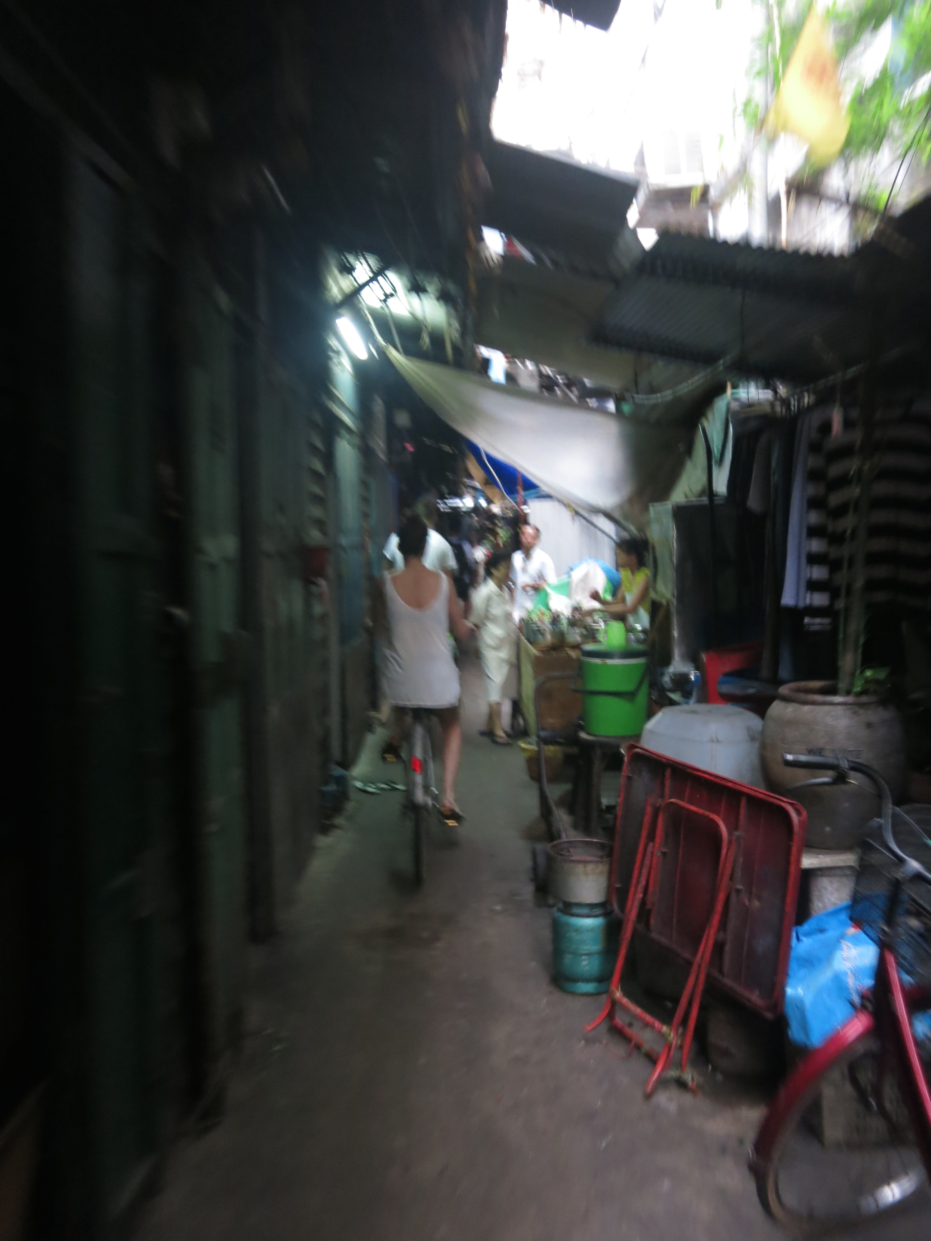 We did also see some of the city centre, doing the usual traipsing through smoggy streets with minimal footpaths, but my highlight was a morning bike tour, which took us through all the nooks and crannies where, because of politeness, timidity or confusion you would not normally venture. We started by going through Chinatown, where the streets narrow to backstreets, which narrow to laneways, which narrow to alleyways, which narrow to passageways until your shoulders are almost touching the sides! As we went down orders of magnitude I kept being surprised that another one awaited!