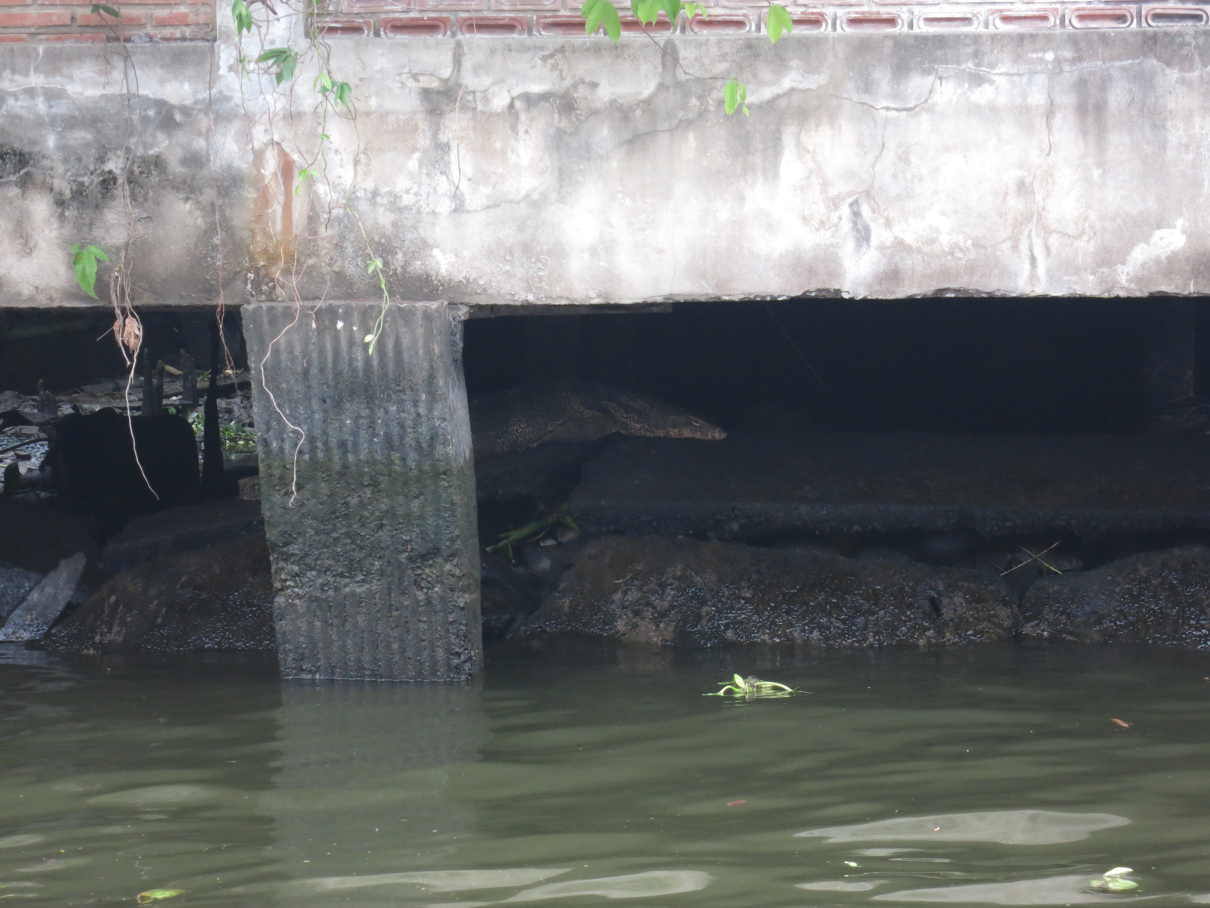 After this we were back on the boat for another tour of the waterways, where we saw a few of the very large (well over 1.5 metres!) monitors that inhabit the area. They are apparently a sign of good luck and welcomed – they also live by preference of rotting fish, so that might account for some of their popularity as there was plenty of dead fish floating around what must be pretty polluted waters.