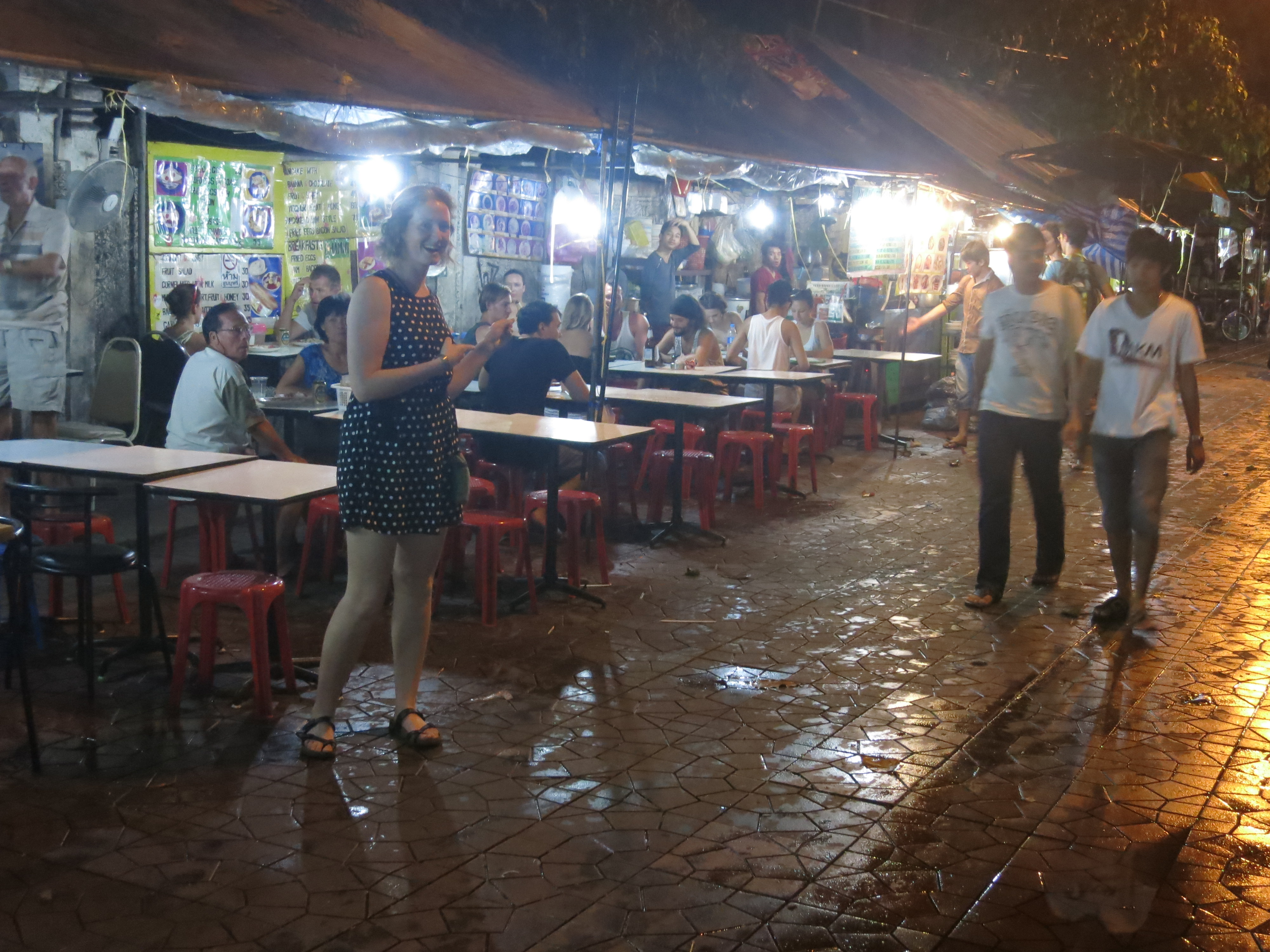 While we were gallivanting around, Thailand was at another peak in it's long-running political crisis, with the Prime Minister being removed from office for corruption or the subject of a political coup, depending on your analysis. We saw little of this, except on our last evening, traipsing around yet again through petrol-filled city streets, vainly looking for an area with food on offer, and came across a park or stadium filled with people listening to a booming, angry voice, which turned out to be a rally for the yellow shirts side of the dispute. Earlier we'd been trying to get to an area Niamh knew from a previous trip and – with our minimal Thai – not being able to understand when the tuk-tuk drivers tried to tell us that it was no good there. We, in our uncharitable way, thought they were trying to scam us for a quick and easy fare, but we eventually found out that there were protests and street fights going on there. In Bangkok there did seem to be a bit more cheeky rip-offs than we'd yet seen, but all pretty minor and this was another reminder not to get into the us-and-them mentality of the locals are out to get us. That said, when we eventually got a lift, the driver dropped us off to a shitty, overpriced restaurant with nothing else in sight! So we resumed our weary traipsing and ended up having a light, tasty meal right next to our hotel (where we moved for the last night as our train left before 06:00).