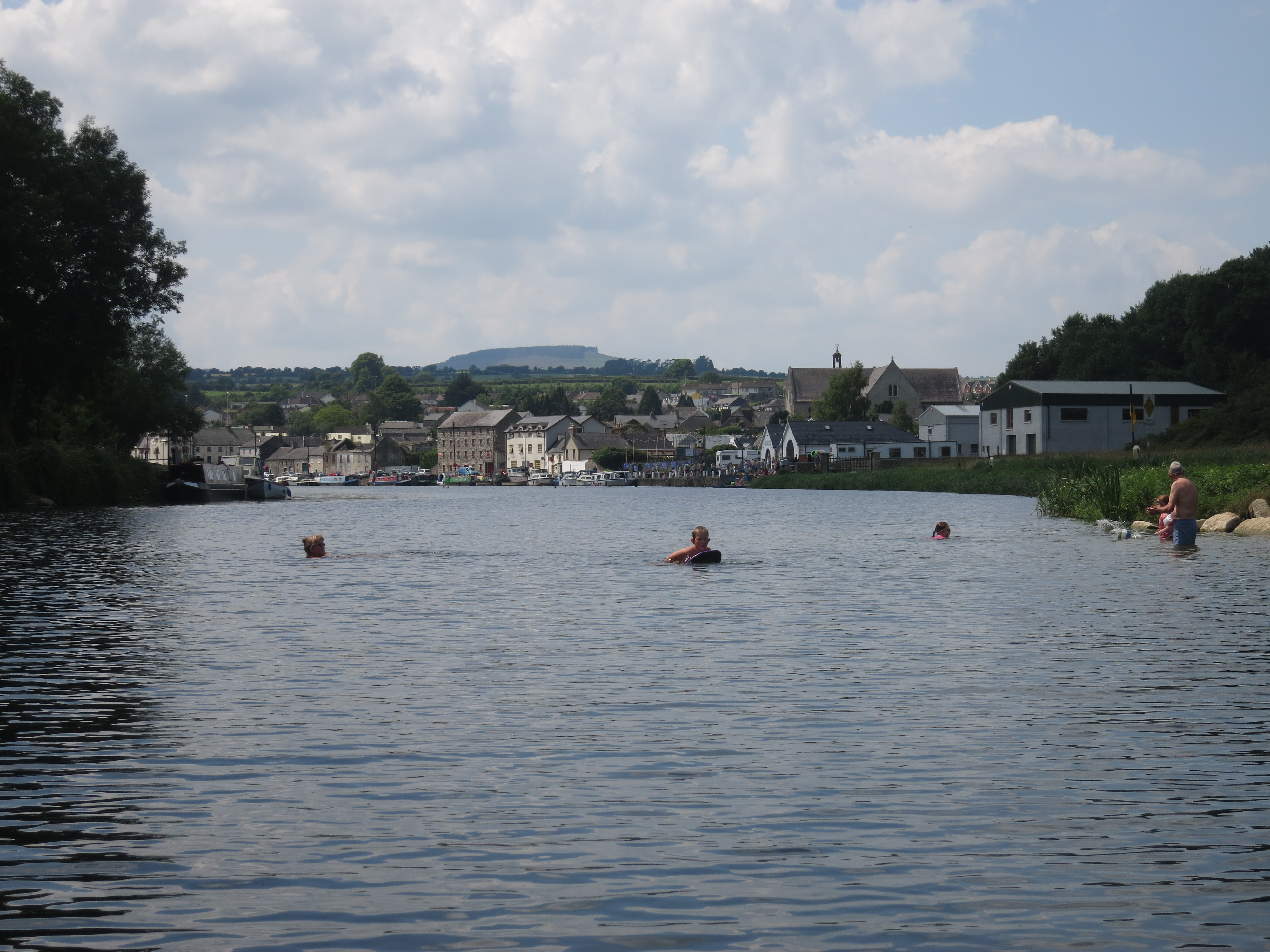 The town of Graiguenamanagh seems to be a particularly popular place for barges to congregate, possibly because it's the first place upriver from the tidal zone, below the last lock just downriver. Whatever the reason, it was a very pleasant place, with kids jumping off diving boards into the river, people hanging around the banks talking and swimming and barge travellers sitting on deck watching it all.