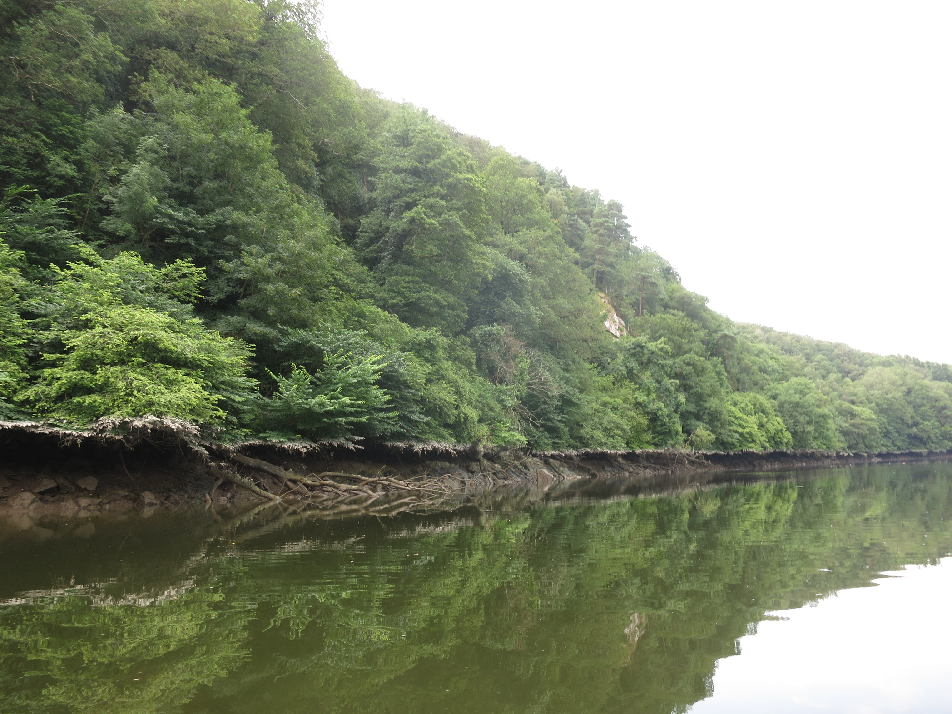 After our fish and chips we headed back out, set up the tent in the dark by the river and fell deeply asleep. Next morning, clear and warm, we headed off, the country becoming wooded, forest all around, and hillier. While the farmland had been pretty, this country was absolutely beautiful. I had expected to be travelling mostly through farmland and open country, past small villages and the odd bigger town; my conception of Ireland didn't include such large, beautiful, dense forest, so it was a lovely surprise to find ourselves paddling for hour after hour through such beautiful country!