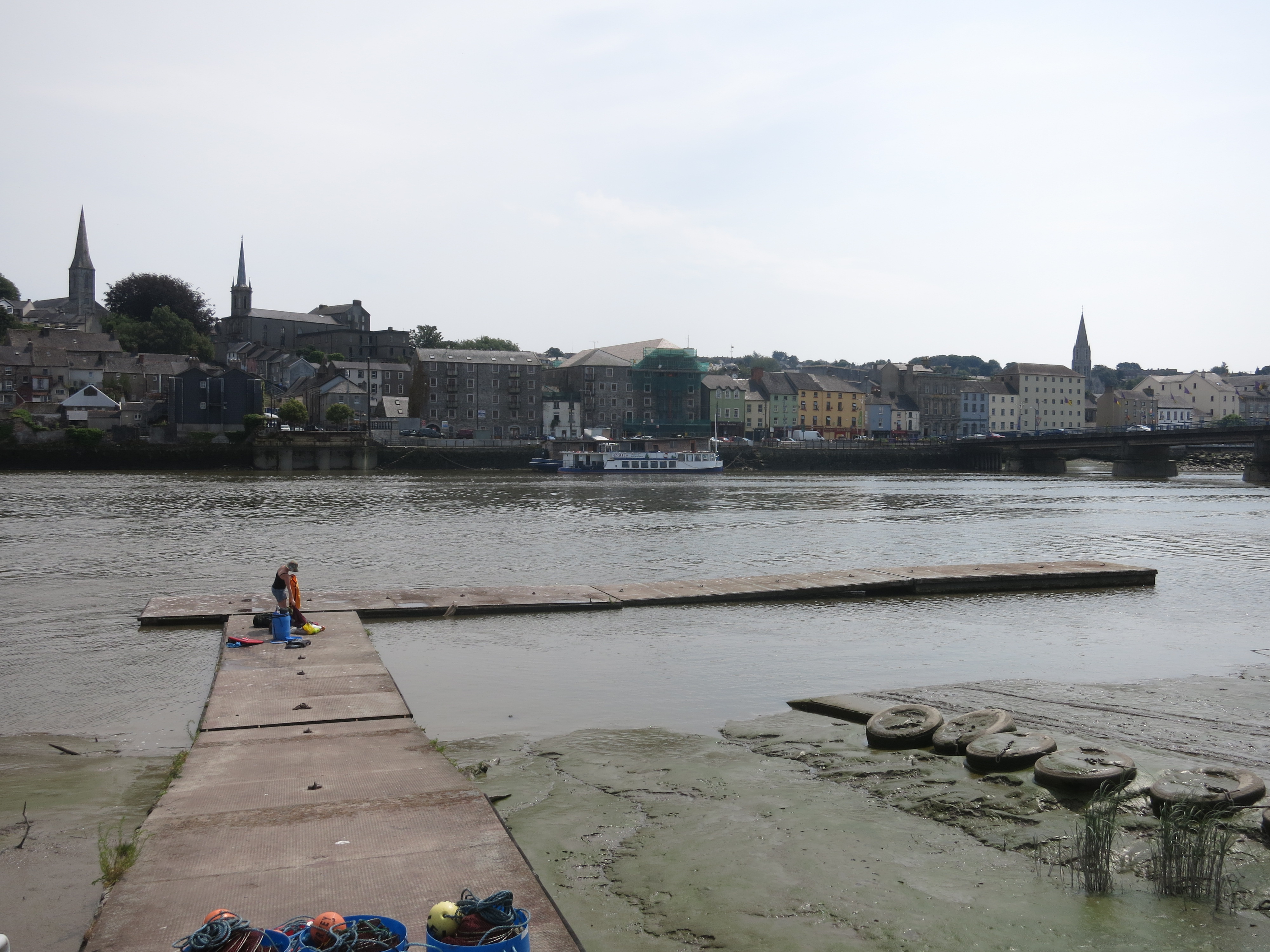The country here was still pretty but, being tidal, the banks were muddy and, as we got closer to the large town of New Ross, the country opened up to farmland then urban, so the scenery became steadily less pretty – but still nothing like ugly!