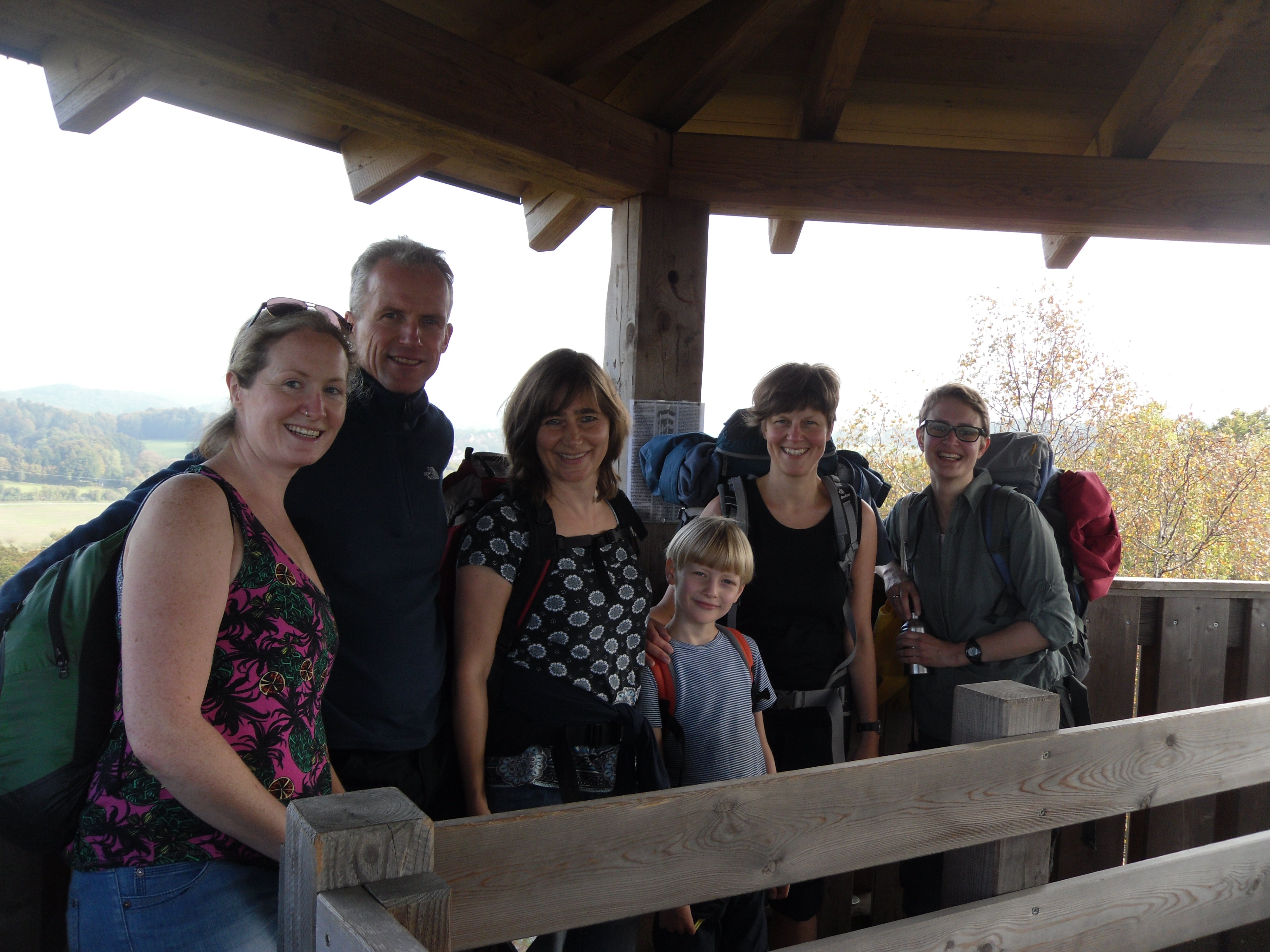 We got some trains and a bus north, meeting friends along the way, to the fränkische Schweiz to meet Eva, who'd organised our walk, and her partner Falk. Along with us were also Isa and her son Leo, and Maggie, who I worked with in Katherine at the Language centre in the mid-2000s and hadn't seen since then.