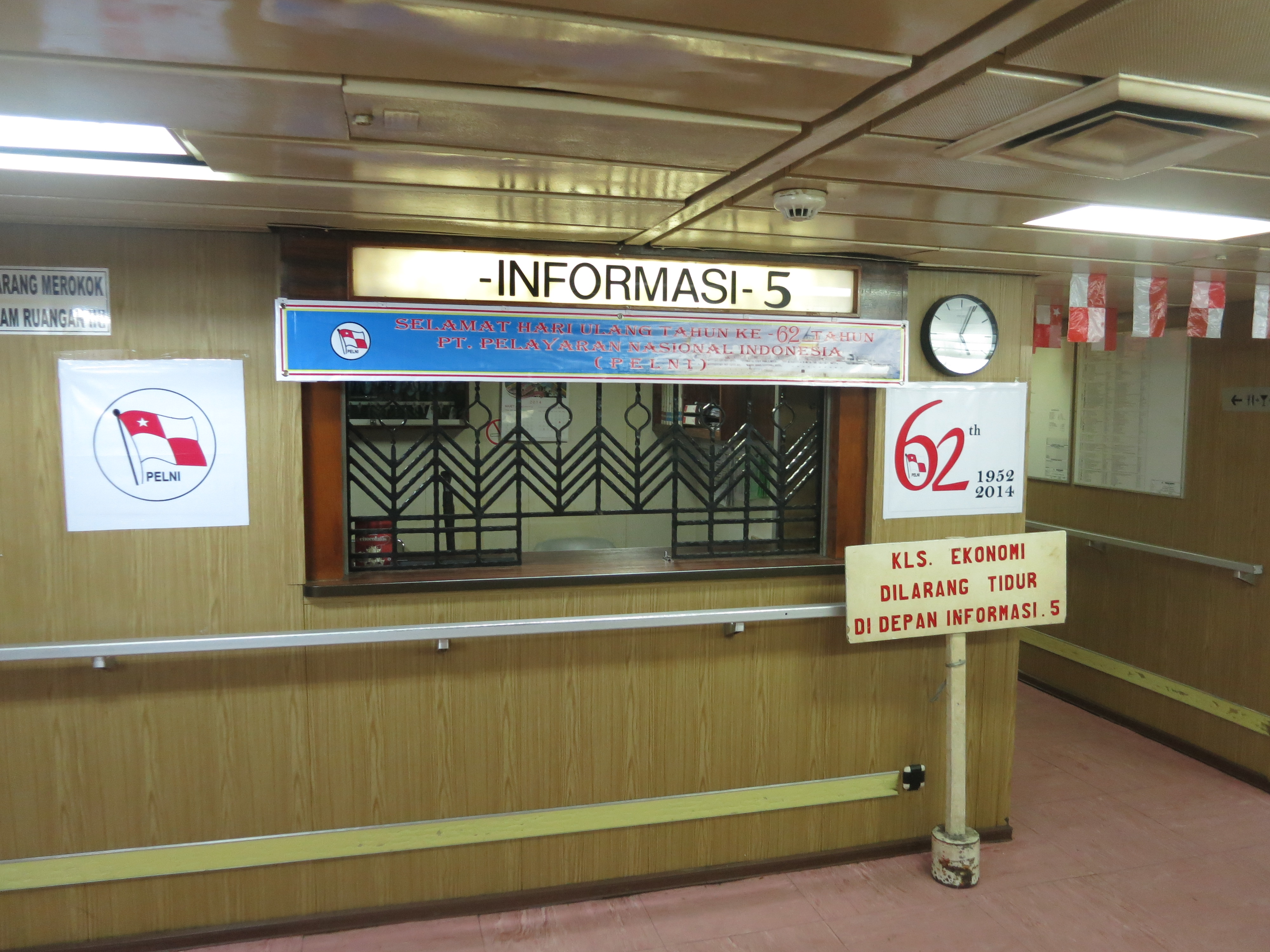 The information counter, proudly proclaiming Pelni's 62nd year of operation.