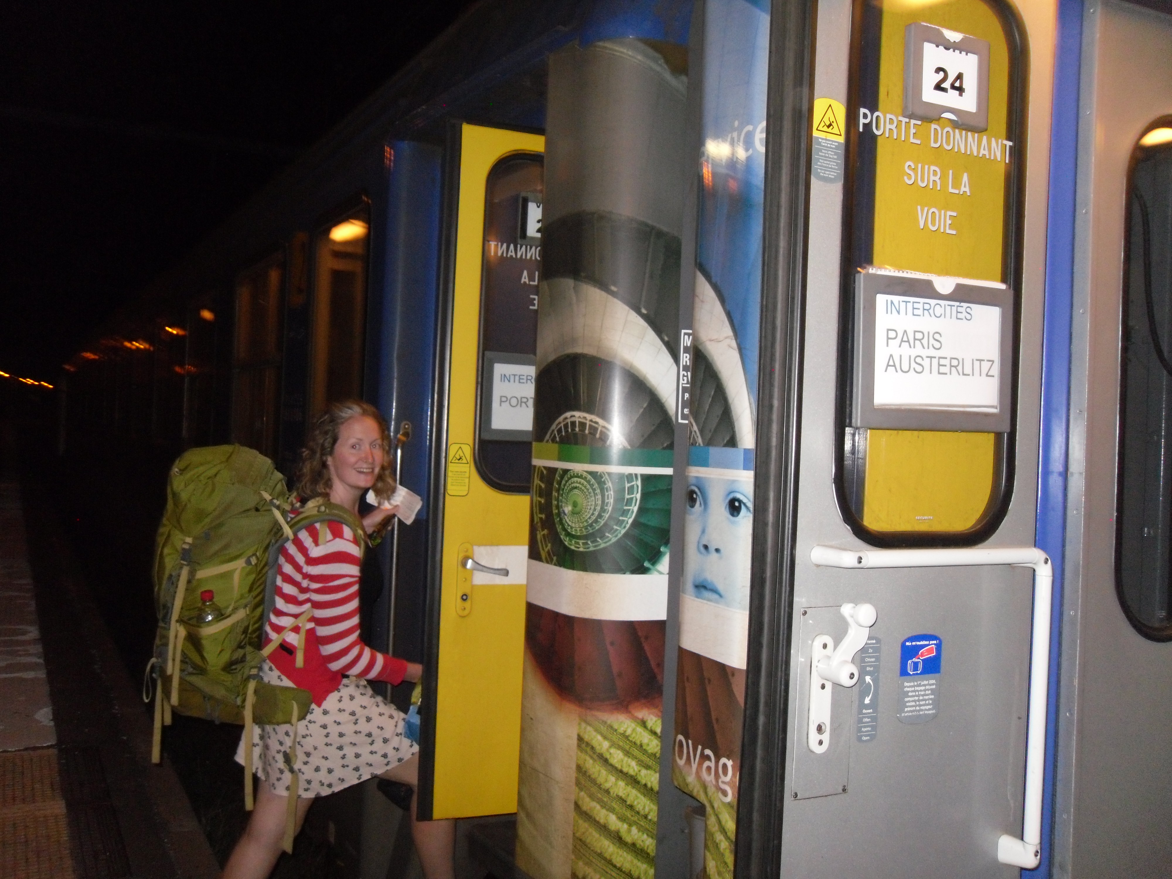Boarding the night train from Perpignan to Paris.