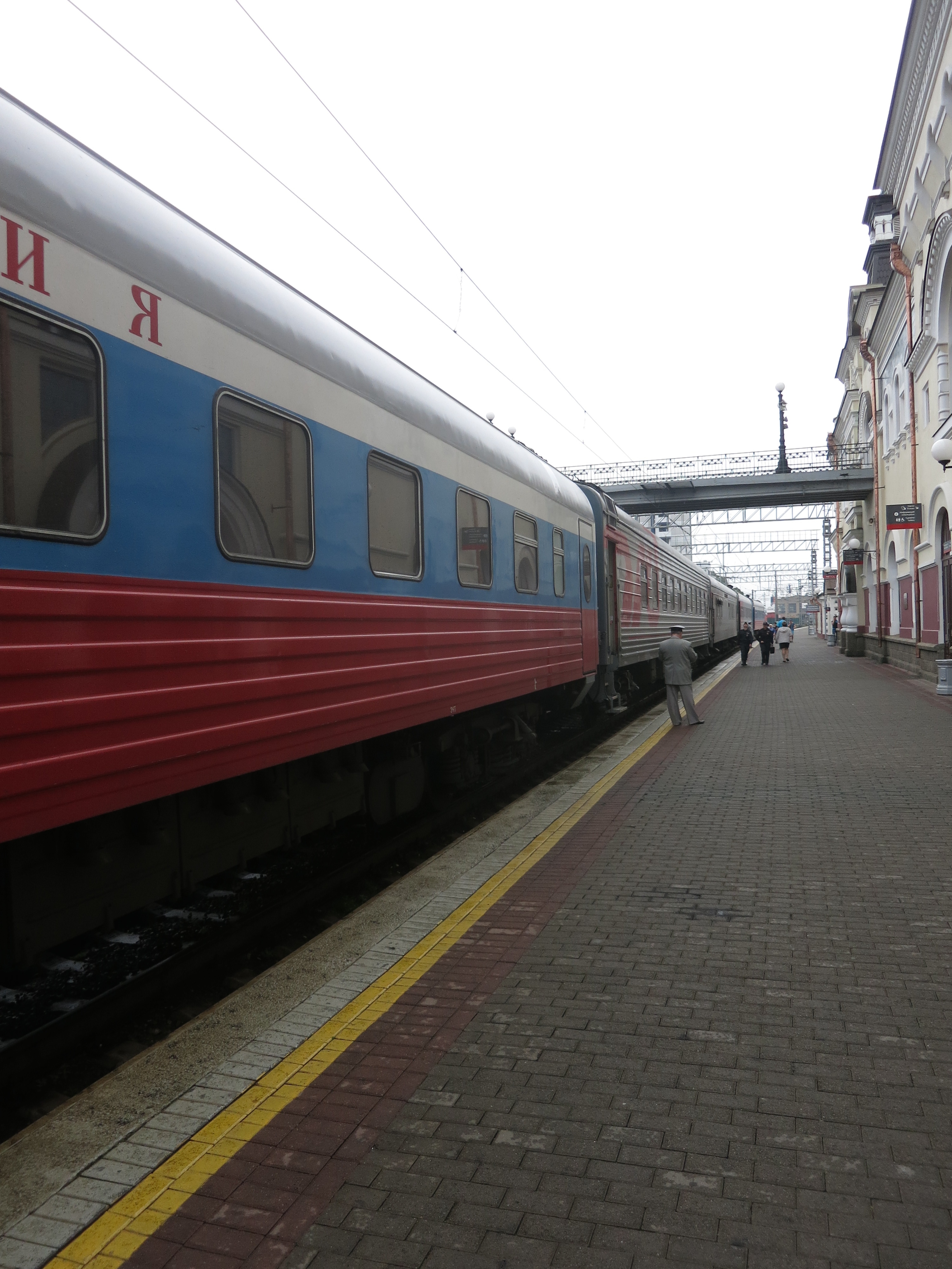 Not usually a problem, but the indefatigable Kate was meeting us at 10:00 to go down to the station for our 11:30 departure and somehow we didn't hear Niamh's alarm and I was only awoken, at 09:55, by the dogs jumping on us wanting to go to the loo! After a hurried pack we headed off, not as clear-headed as would be optimal, and got to the station with plenty of time to spare. We said a fond farewell to Kate, our indefatigable companion of the last few days and were away on the famous train No. 001 “Rossiya”, the premier trans-Siberian train (although such a term doesn't actually exist for any train or train line, there being a number of variants of routes across Siberia and two eastern destinations, Vladivostok and Beijing).