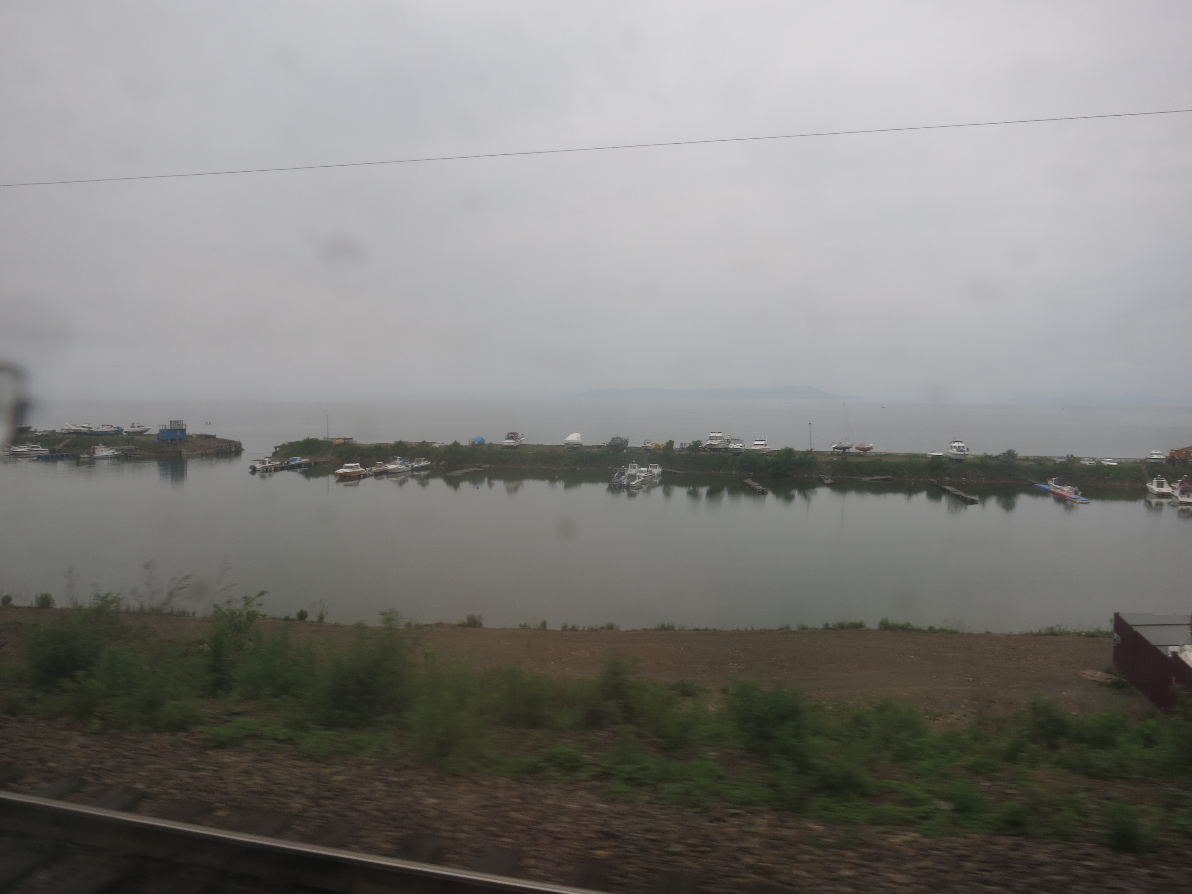 As we left on a rainy late morning from Vladivostok we were heading into Russia's vastness, more or less due north from Vladivostok for the first half day – in contrast to China's new cities, miles of grain production and small patches of forest, Russia is covered in endless, pretty, forest. For the first half hour or more we travelled right next to the ocean, then headed inland, admiring the rolling hills from our quiet, clean platzkart carriage.