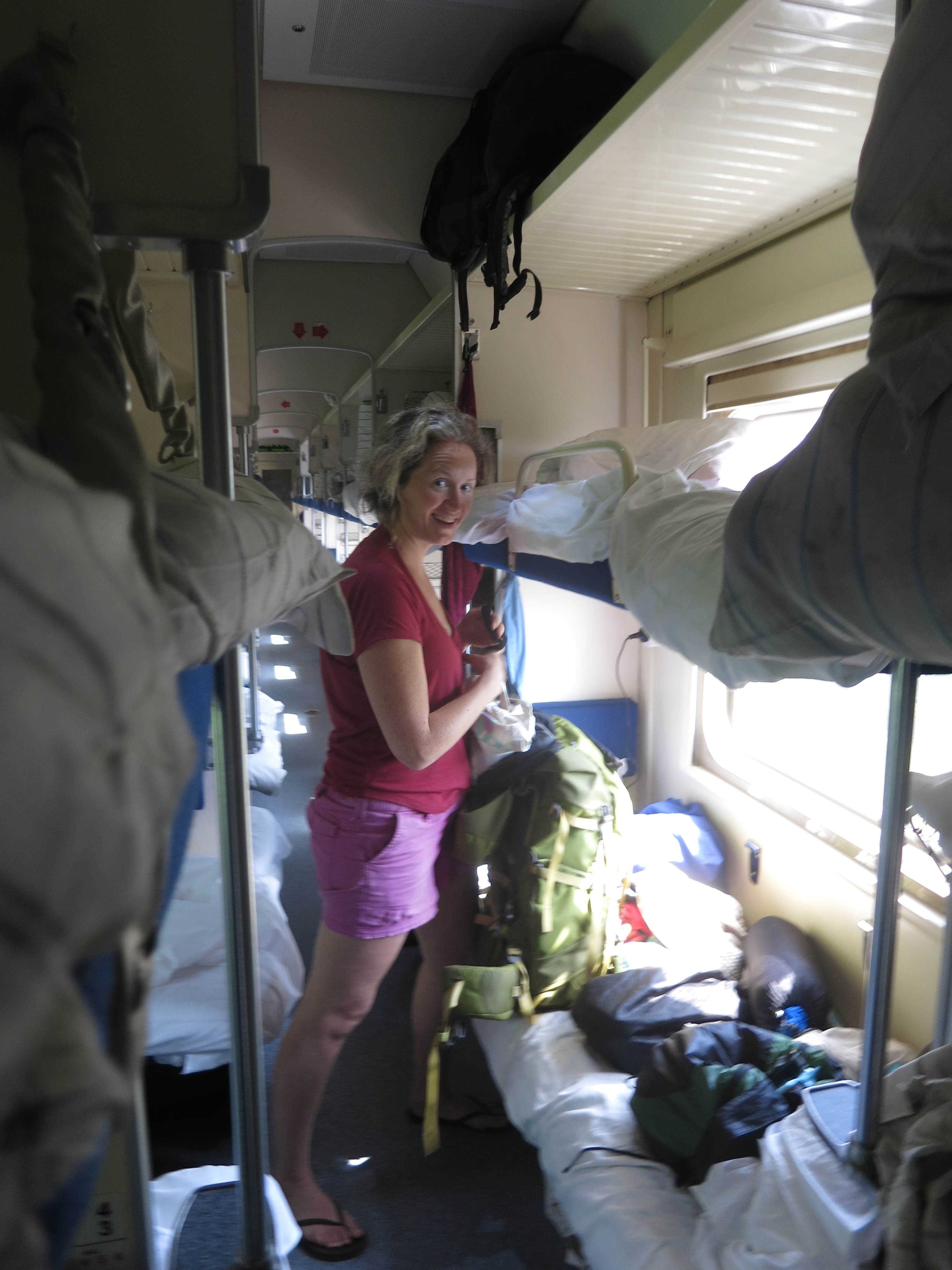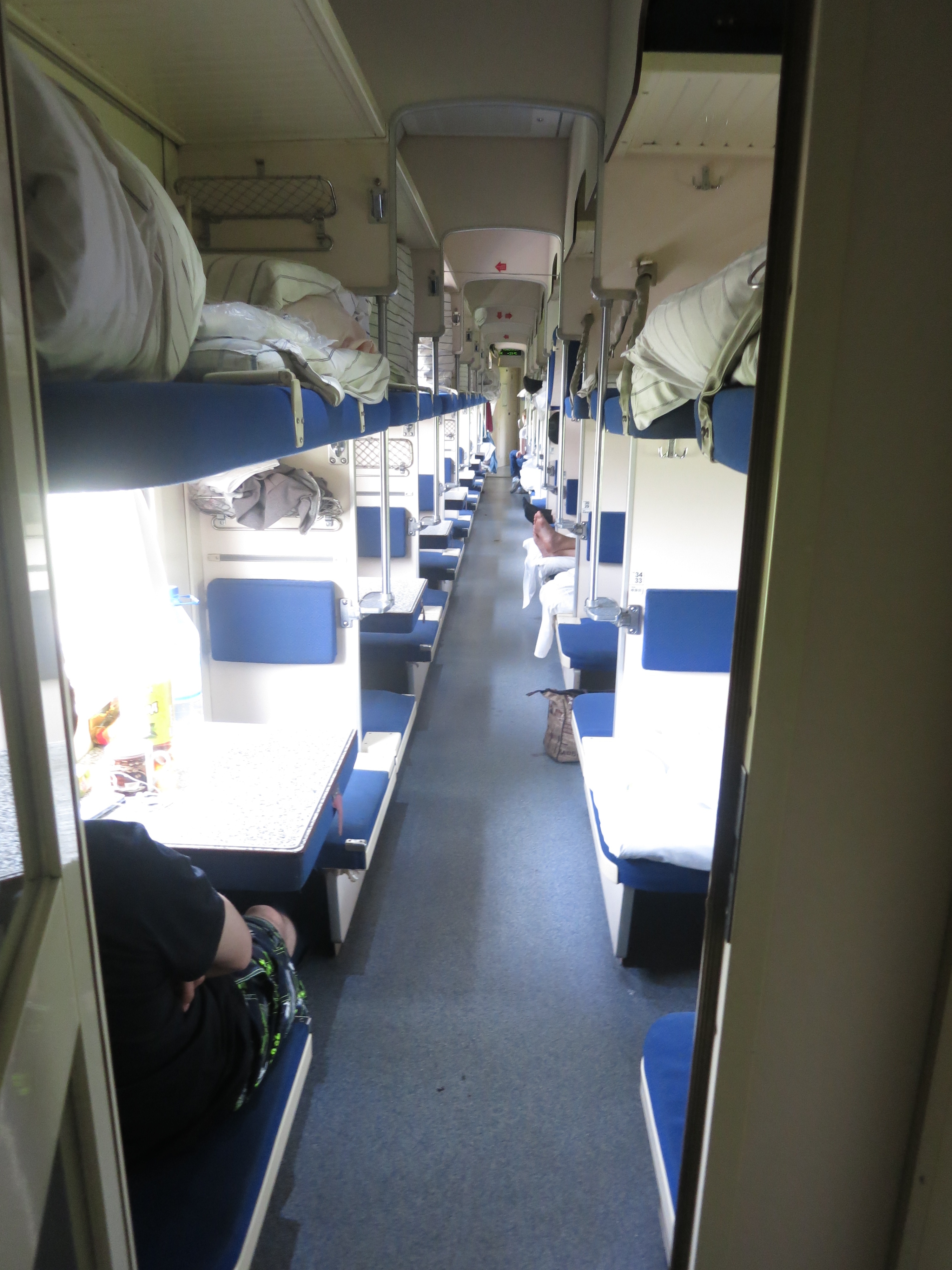 Platzkart is a type of open sleeping cars, similar to the normal four-berth sleeping compartment, except that there is no door or wall separating the beds from the corridor; and, along the corridor there are also sets of two beds along the far wall. It's a cheaper, though less private, way to travel and perfectly comfortable, even if the beds are slightly too short and a little narrow!