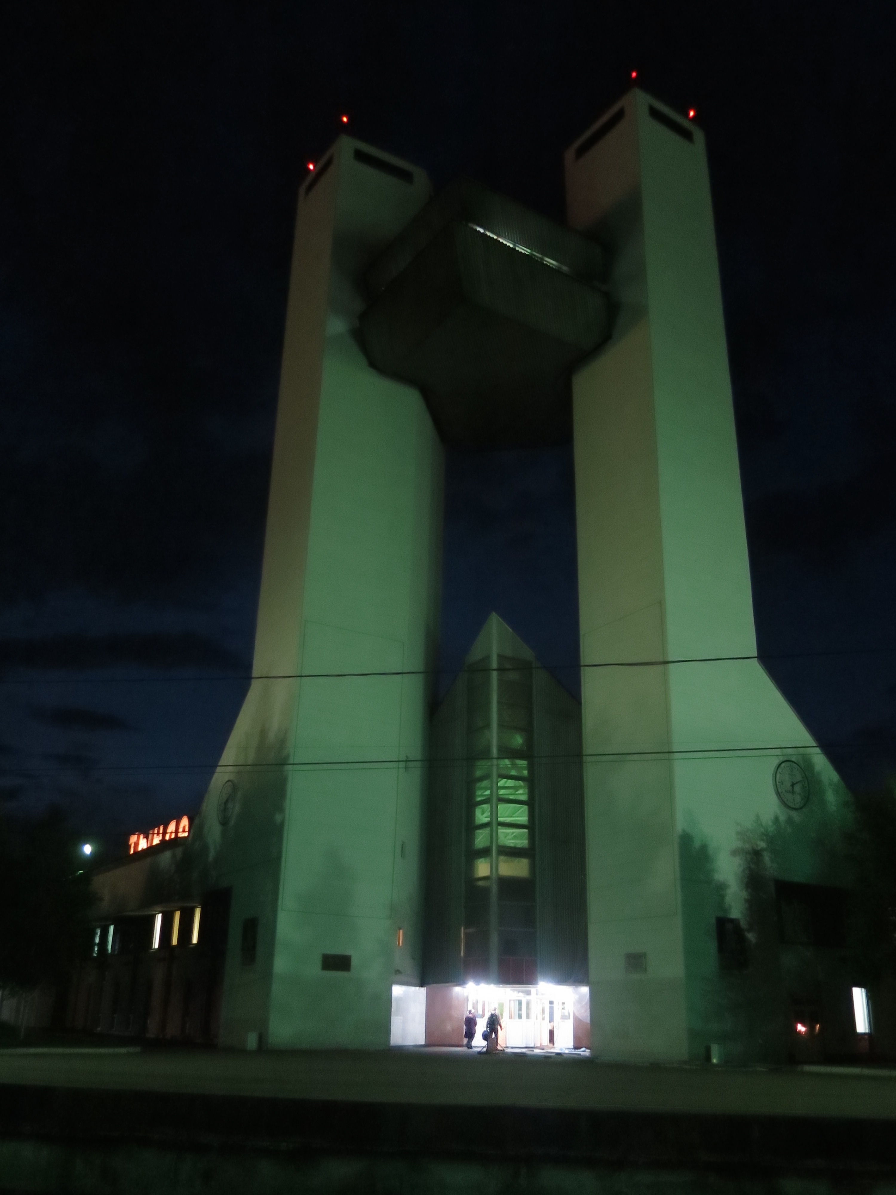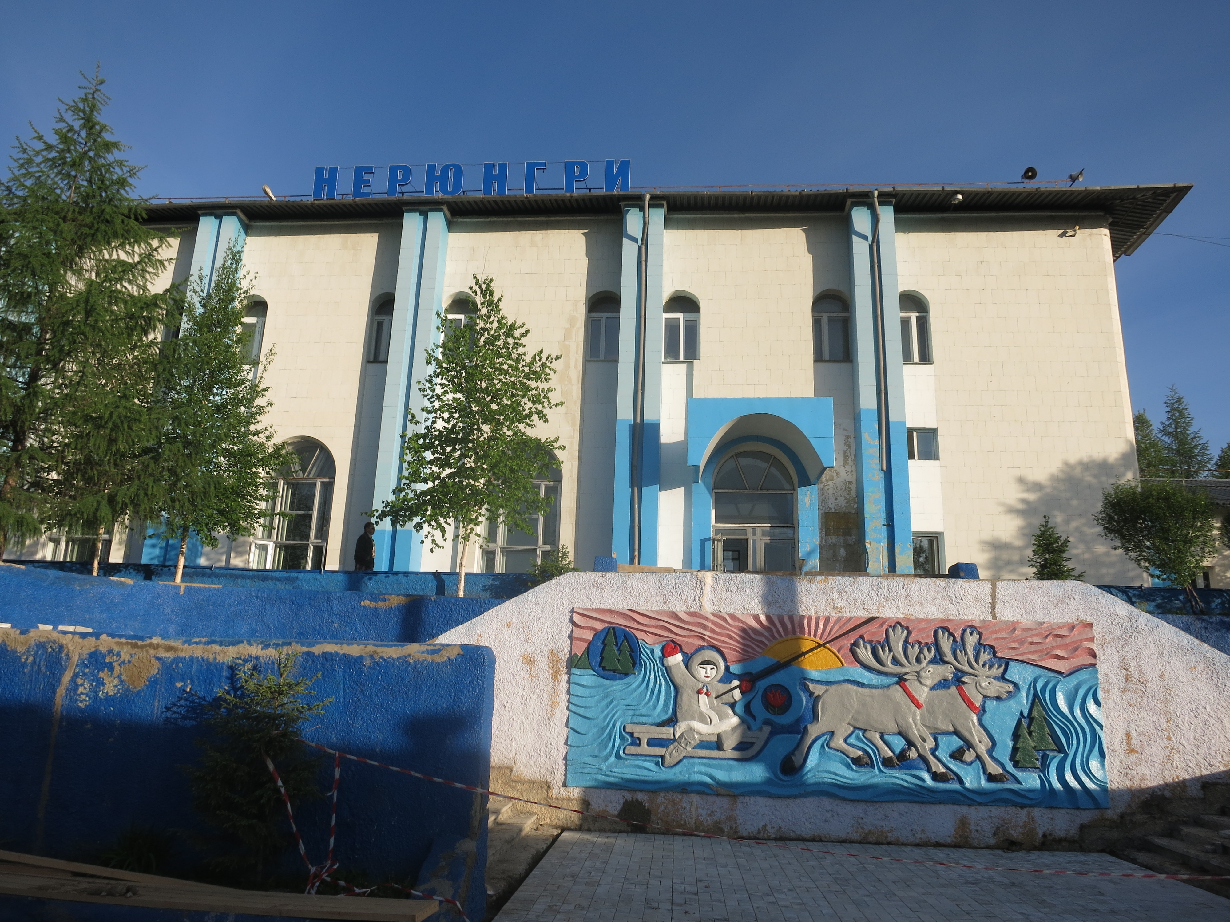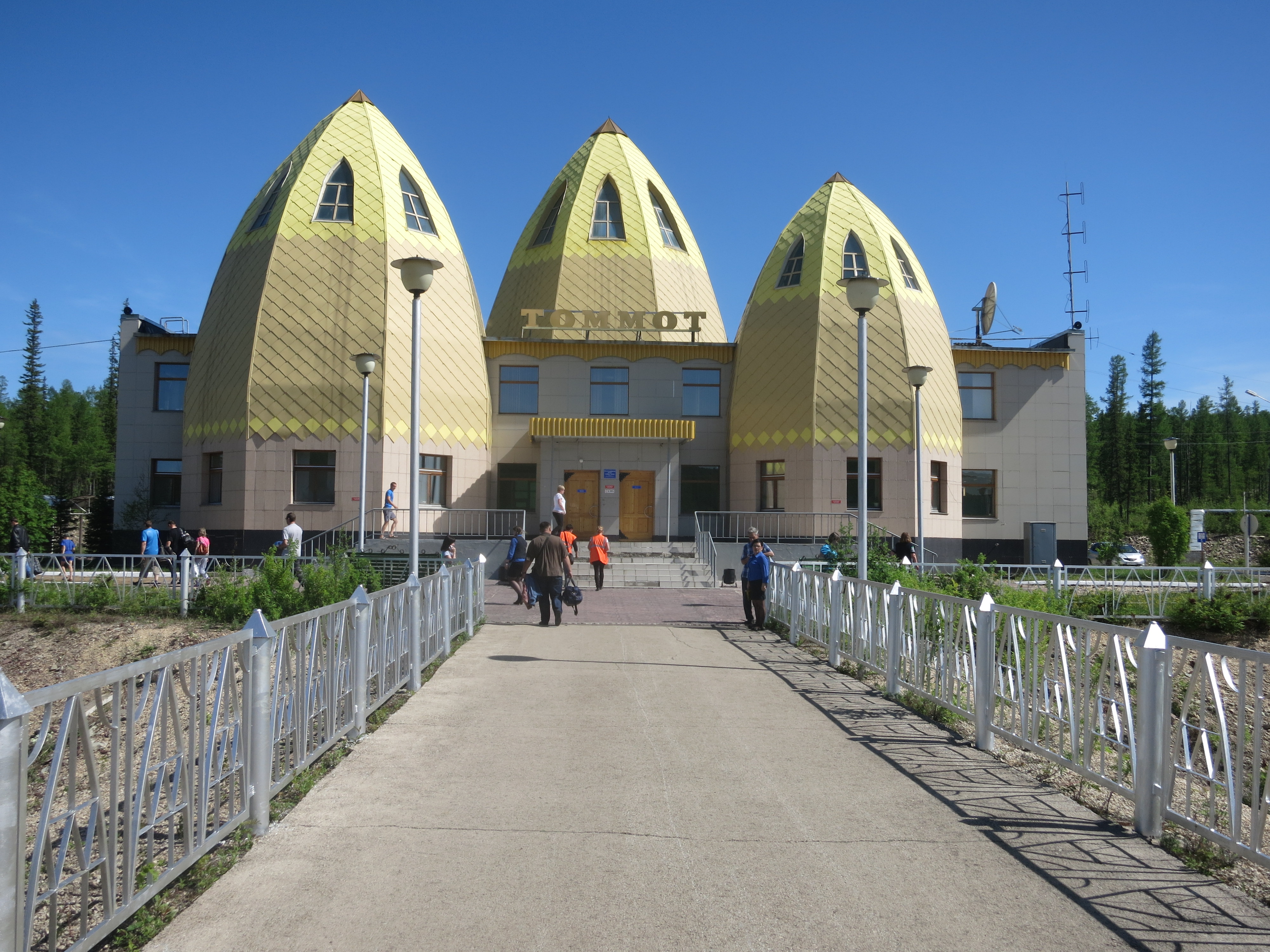 At Neyungri, still unsure about how exactly we'd get to Yakutsk from our final station, we waited a little sleepily for and hour or two and got our final train, a seven hour or so trip to Tommot. Clear information about how to get from the train to Yakutsk is hard to find, but I had some faith in answers on a couchsurfing forum that we should go to the last stop, Tommot, and get a bus or shared taxi from there. That faith was somewhat misplaced, but I was unsure about the conflicting advice I got at Neyungri station and on the train to Tommot that I stuck with what I knew – which turned out to be poor advice! A few hours before Tommot, most of the train got off where we should have and we continued on to the last stop, a fascinatingly-designed small station where we failed to get a bus onwards! After various undertakings and delays, one of the station staff, who'd all been very helpful, was trying to help us and a local they knew said they'd drop us off at a petrol stop on the main highway, 800 metres away, as we intended to try hitch-hiking; then he talked to some people stopped, Niamh asked someone and in less than two minutes we had a lift all the way to Yakutsk!
