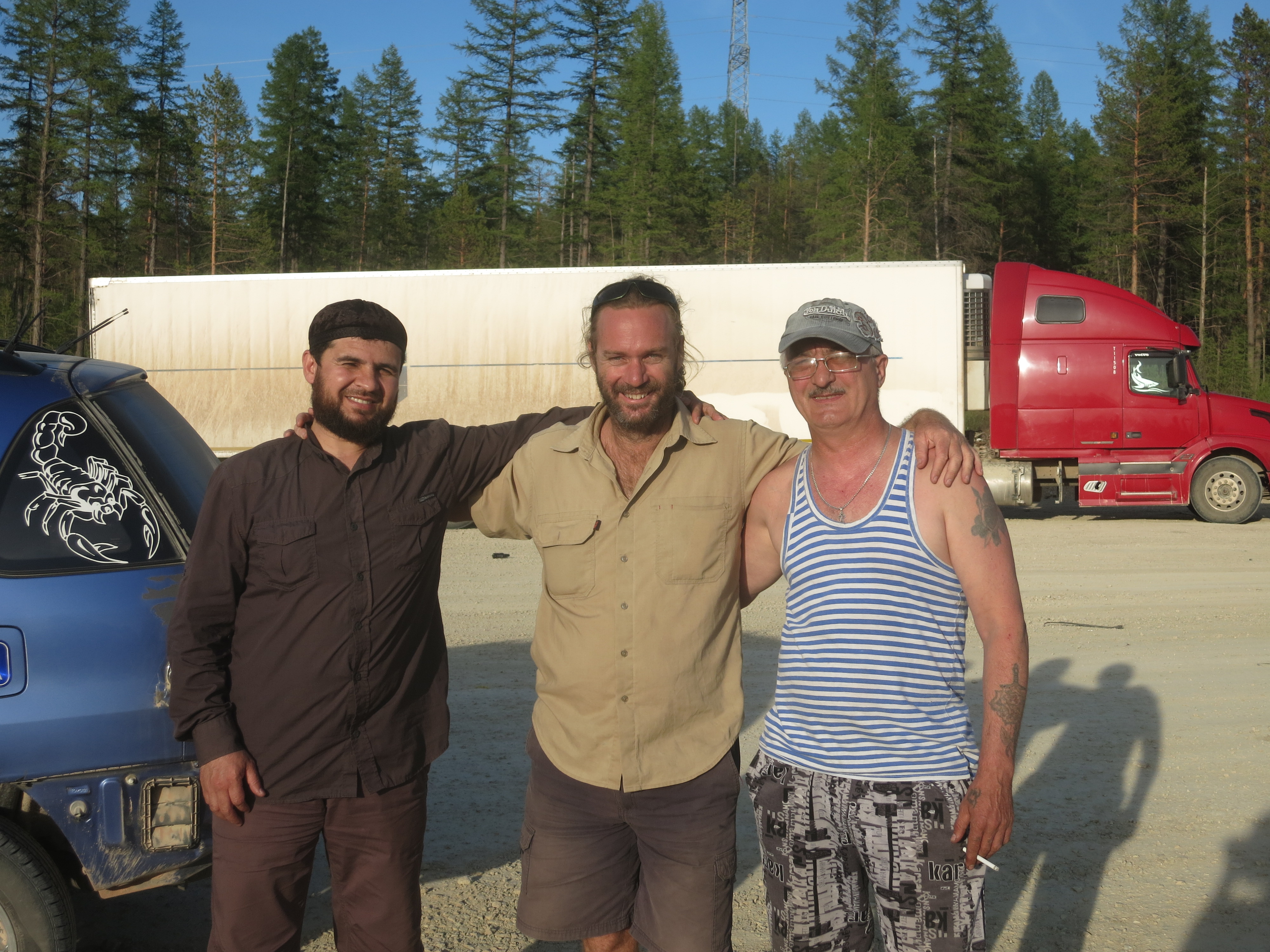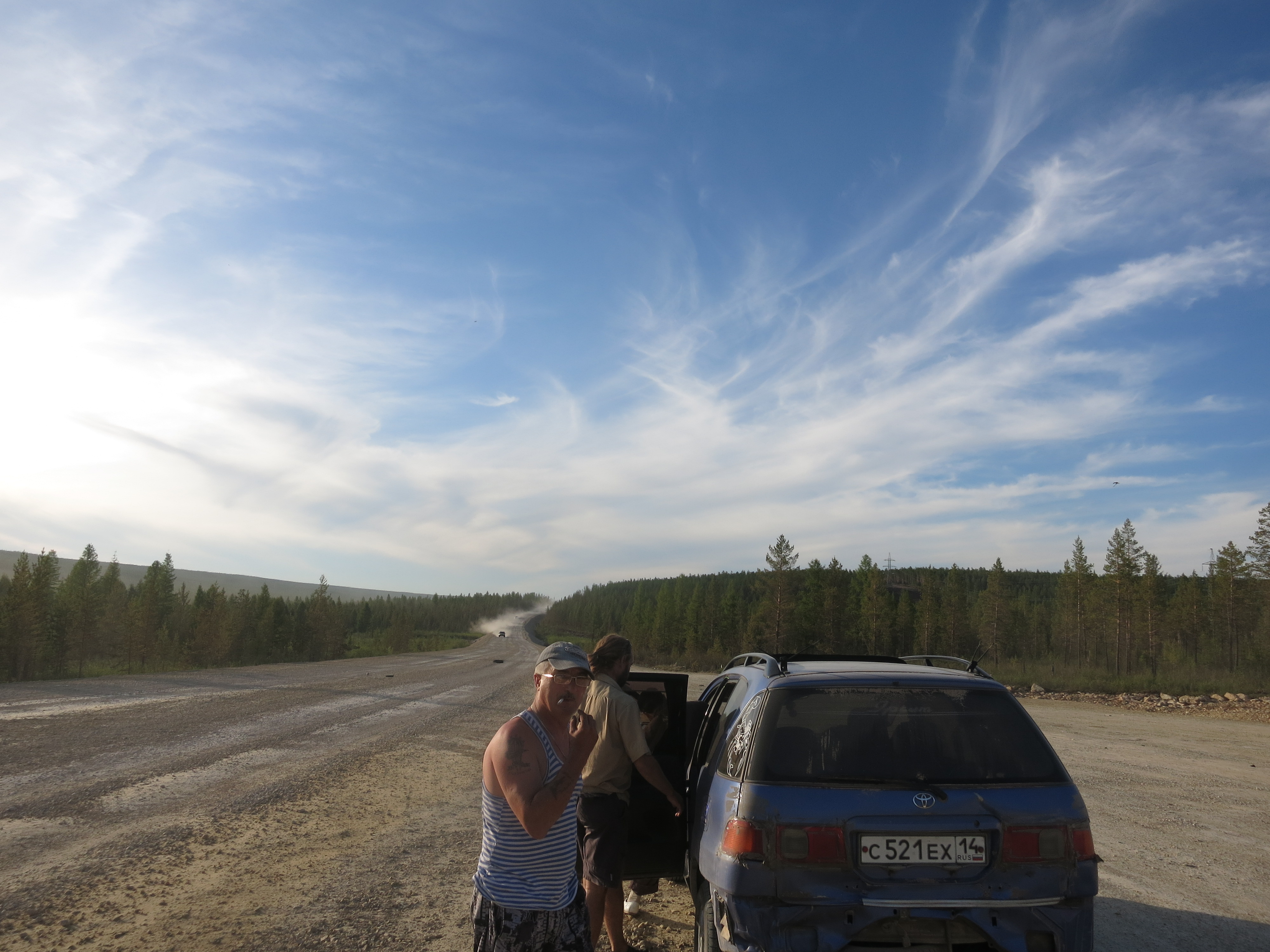 Our new saviours were bringing back three cars they'd bought new in Moscow – over 9000 km and ten days driving away – to sell in Yakutsk. It seems there was a busy trade in cars in Yakutsk; apparently many people buy Japanese cars in Vladivostok and drive them there to sell. Our convoy of three (two brothers and one of their wives) headed back out onto the road and drove … and drove and drove! The road is partly sealed, but mostly unsealed, in some parts a fairly good dirt road, although with lots of potholes, but a great deal of it is in the process of being sealed and in its current state in very poor condition and extremely dusty, so progress was slow and uncomfortable.
