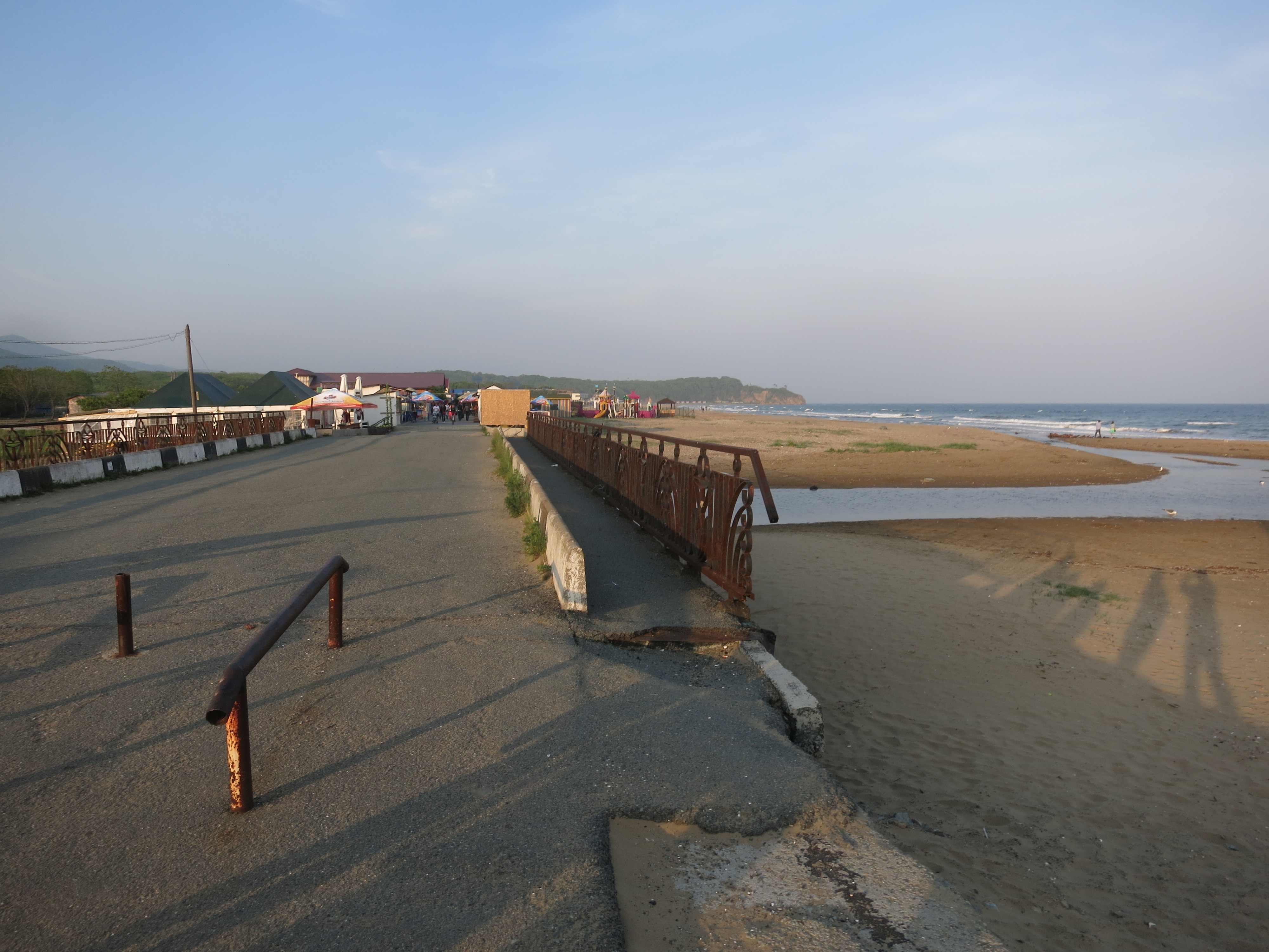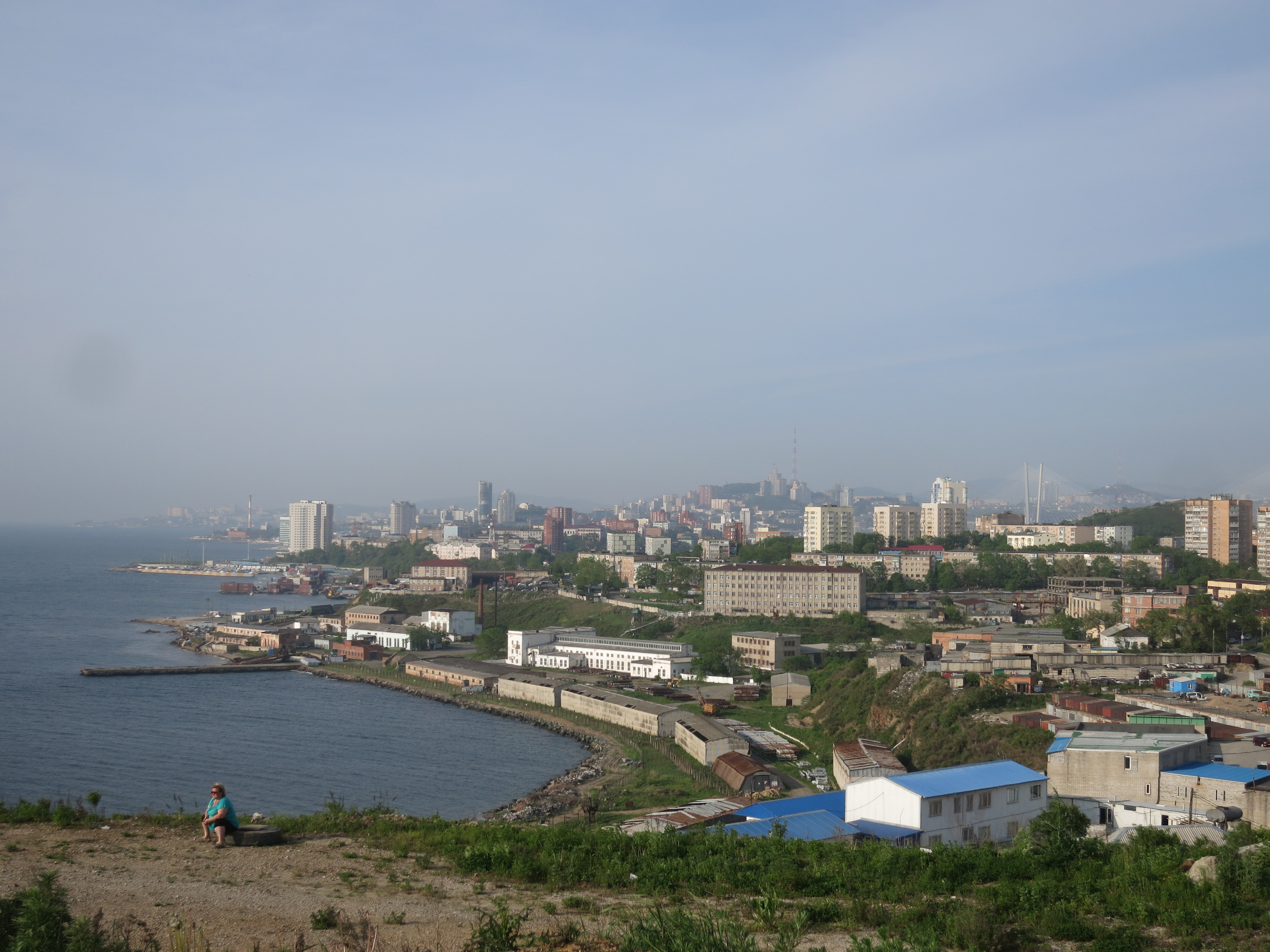 What had started as a very nice introduction to Russia, with all sorts of reminders of Russian generosity flooding back, continued once we reached Vladivostok; after a bit of uncertainty about our couchsurfing hosts, we were picked up by our hosts, Olga and Efim, and taken out of town to a local beach and fed a meal of Uzbeki and Russian food overlooking the water. It was lovely, but a big change in weather! For the first time (outside of various over-airconditioned trains and buildings) we shivered and were wrapped up in blankets provided by the kiosk owner.